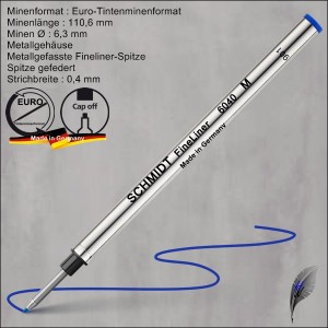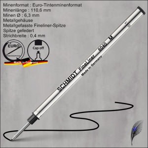 Schmidt Faserminen 5020, Fasermine im Euro-Tintenminenformat, Metallgehäuse, robuste, formstabile Faserspitze, wasserbasierte Tinte, Strichbreite ca. 1,0 mm, für Tintenroller mit Kappendichtung, lieferbar in schwarz und blau