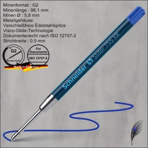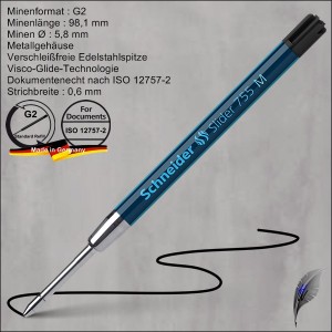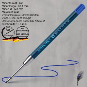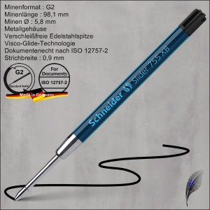 Schneider Kugelschreibermine Express 735, Großraummine im internationalen G2-Format, Metallgehäuse, Verschleißfreie Edelstahlspitze, dokumentenecht nach ISO 12757-2, lieferbar in 4 Farben und 3 Strichbreiten
