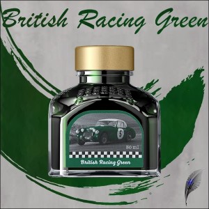 Diamine Racing Inks, eine Hommage an die berühmten Rennfarben des Rennsports, für Füllfederhalter mit Kolbenmechanik, oder Konverter, Tintenglas mit 80 ml. Inhalt, lieferbar in British Racing Green, French Racing Blue und Rosso Corsa