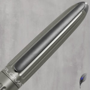 Exklusiver Füllfederhalter aus der Diplomat Aero Kollektion, Aluminiumgehäuse mit grau eloxierter Oberfläche, stromlinienförmiges Design, Kappe mit exklusivem Schließsystem "Soft sliding click", Zierteile in dunkel mattchrom, mit Edelstahl- oder 14K/585 Bicolor-Goldfeder, mit Präsentetui