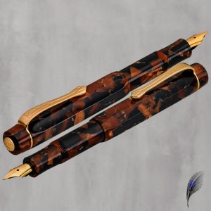 Der Hickory Brown ist mit einer fein ziselierten, vergoldeten Edelstahlfeder ausgeüstet und in 5 Federbreiten erhältlich.