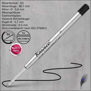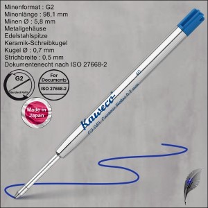 Kaweco G2 Kugelschreiberminen, Großraumminen im internationalen G2-Format, dokumentenecht nach ISO 12757-2, besonders weiche Schreibpaste für ein angenehmes Schreibgefühl, erhältlich in schwarz und blau