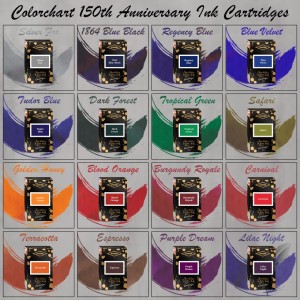 Diamine 150th Anniversary Füllhaltertinte, Tintenkollektion zum 150jährigen Firmenjubiläum der Liverpooler Tintenmanufaktur, für Füllfederhalter mit Kolbenmechanik oder Konverter, Tintenglas mit 40 ml. Inhalt, erhältlich in 16 Farben