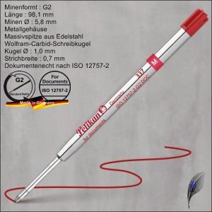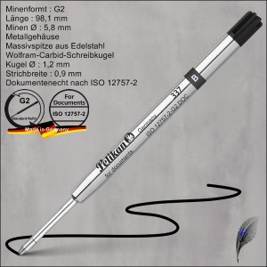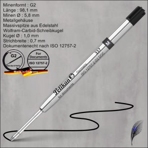 Schmidt Kugelschreibermine P900, Großraummine im internationalen G2-Format, Metallgehäuse mit Edelstahlspitze, TC-Schreibkugel, dokumentenecht nach ISO 12757-2, erhältlich in 3 Strichbreiten und 4 Farben