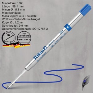 Kaweco G2 Kugelschreiberminen, Großraumminen im internationalen G2-Format, dokumentenecht nach ISO 12757-2, besonders weiche Schreibpaste für ein angenehmes Schreibgefühl, erhältlich in schwarz und blau
