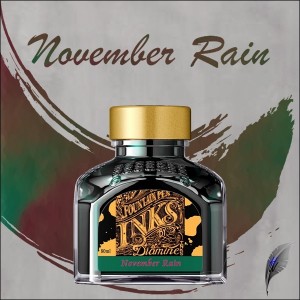Die Tinte besteht aus einer Grundfarbe und einer Zweitfarbe die beim Trocknen der Tinte den Sheen bildet.