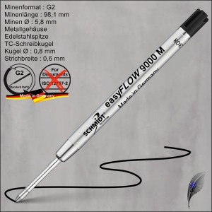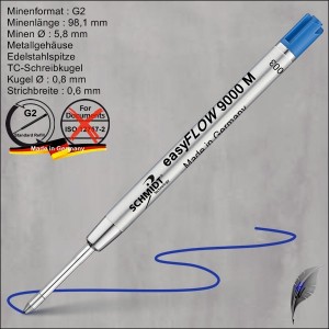 Schmidt Kugelschreibermine Softline, Großraummine im internationalen G2 Format, Metallgehäuse, verschleißfreie Edelstahlspitz mit TC-Schreibkugel, neu entwickelte Schreibpaste für ein besonders weiches Schreibgefühl, dokumentenecht nach ISO 12757-2, erhältlich in schwarz und blau