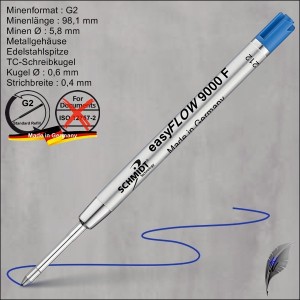 EasyFlow Kugelschreibermine mit Metallgehäuse , Internationales G2-Format , Edelstahlspitze , Hohe Schreibleistung , Höhenstabil bis 4000 Meter , Temperaturstabil bis 40 Grad Celsius
