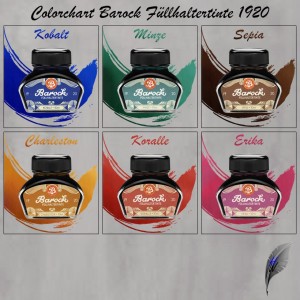 Barock Füllhaltertinte 1910 von Octopus Fluids, klassische Füllhaltertinte die klassische Werte und moderne Ansprüche vereint, für Füllfederhalter mit Kolbenmechanik, oder Konverter, 30 ml. Tintenglas, erhältlich in 6 Farben