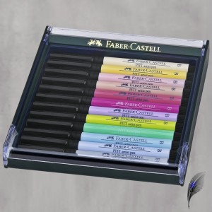 Faber Castell 267421 Bright Colors, Klappbox mit 12 Stiften, Tuschestifte mit pigmentierter, geruchsneutraler und säurefreier Zeichentusche, lichtbeständig, wasserfest und permanent, ideal für Skizzen, Zeichnungen, Layouts, Illustrationen u.v.m.