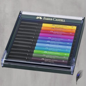 Faber Castell 267420 Pastel Tones, Klappbox mit 12 Stiften, Tuschestifte mit pigmentierter, geruchsneutraler und säurefreier Zeichentusche, lichtbeständig, wasserfest und permanent, ideal für Skizzen, Zeichnungen, Layouts, Illustrationen u.v.m.