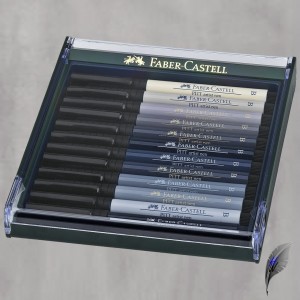 Faber Castell 267422 Earth Tones, Klappbox mit 12 Stiften, Tuschestifte mit pigmentierter, geruchsneutraler und säurefreier Zeichentusche, lichtbeständig, wasserfest und permanent, ideal für Skizzen, Zeichnungen, Layouts, Illustrationen u.v.m.