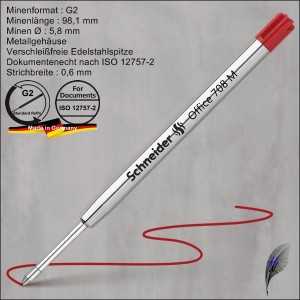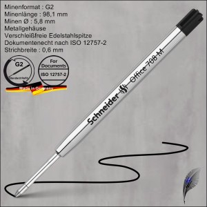 Schmidt Kugelschreibermine P900, Großraummine im internationalen G2-Format, Metallgehäuse mit Edelstahlspitze, TC-Schreibkugel, dokumentenecht nach ISO 12757-2, erhältlich in 3 Strichbreiten und 4 Farben