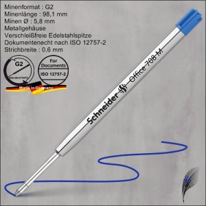 Schneider Kugelschreibermine Express 735, Großraummine im internationalen G2-Format, Metallgehäuse, Verschleißfreie Edelstahlspitze, dokumentenecht nach ISO 12757-2, lieferbar in 4 Farben und 3 Strichbreiten