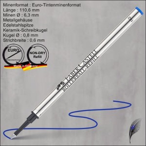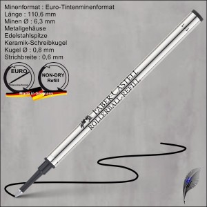 Die Faber Castell Tintenrollermine 1487 - Tintenrollermine mit Metallgehäuse und Edelstahl-Massivspitze mit Keramik-Schreibkugel.