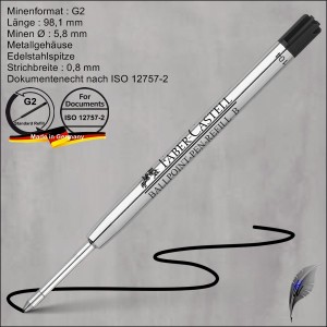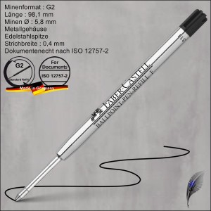 Faber Castell bietet mit der Kugelschreibermine 1487 eine besonders hochwertige Kugelschreibermine mit an. Die Minen sind in 3 Strichbreiten verfügbar, die es Ihnen ermöglichen, ähnlich wie bei einem Füllfederhalter, die zu Ihrer Handschift passende Strichbreite zu wählen.