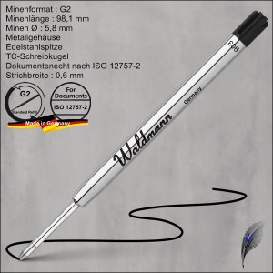 Die Kugelschreiberminen sind passend für alle Waldmann Kugelschreiber, außer den Kugelschreibern der Serie Pocket.