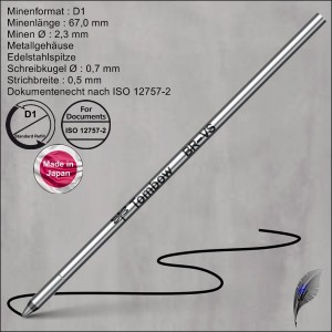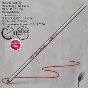 Kaweco D1 Kugelschreiberminen, Minen im D1 Format, Metallgehäuse mit Schreibspitze aus Edelstahl, dokumentenecht nach ISO 12757-2, erhältlich in 3 Farben und 3 Strichbreiten